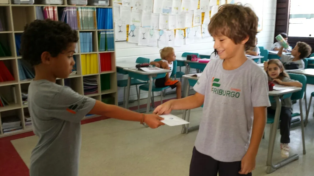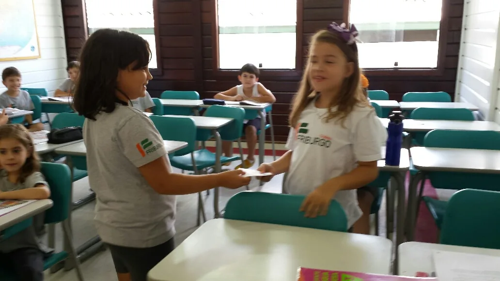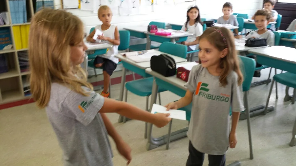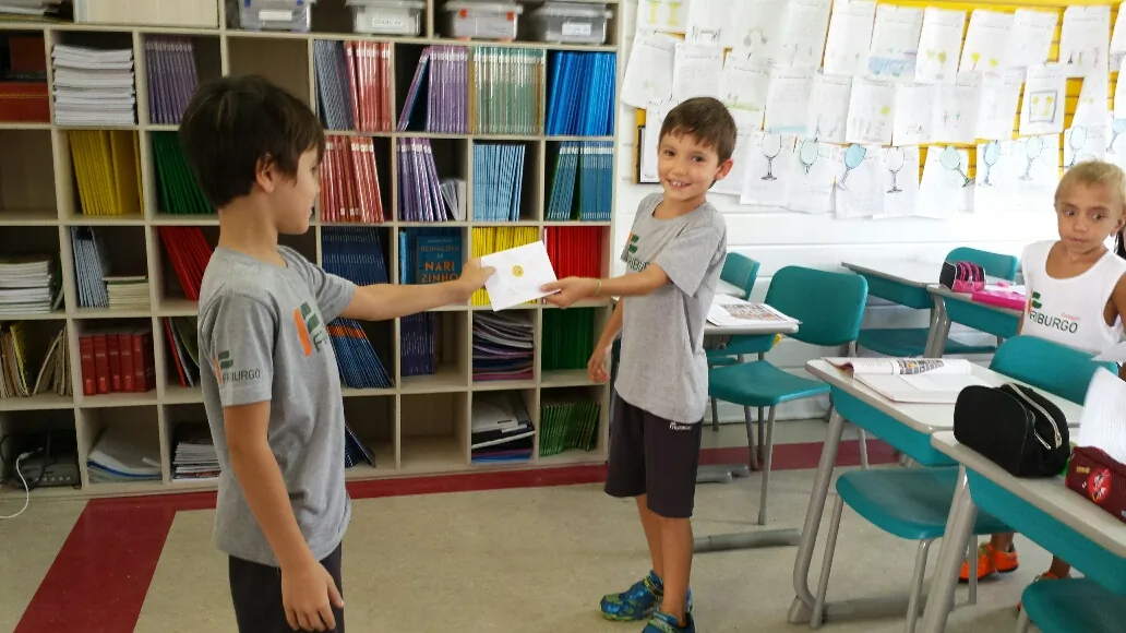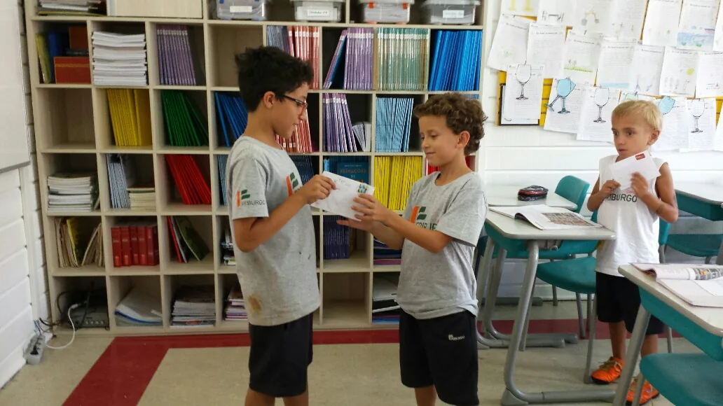 Na 4ª feira passada, eles receberam a visita do carteiro. Alunos do 4º ano entregaram cartinhas, uma para cada amigo. Foi uma alegria só! Crianças emocionadas dizendo que nunca tinham recebido uma carta só para elas. Nas cartas, eles contaram sobre como foi o 3º ano, deram dicas de passeios e escreveram o que mais gostaram; como era a professora, como estudavam para as provas…