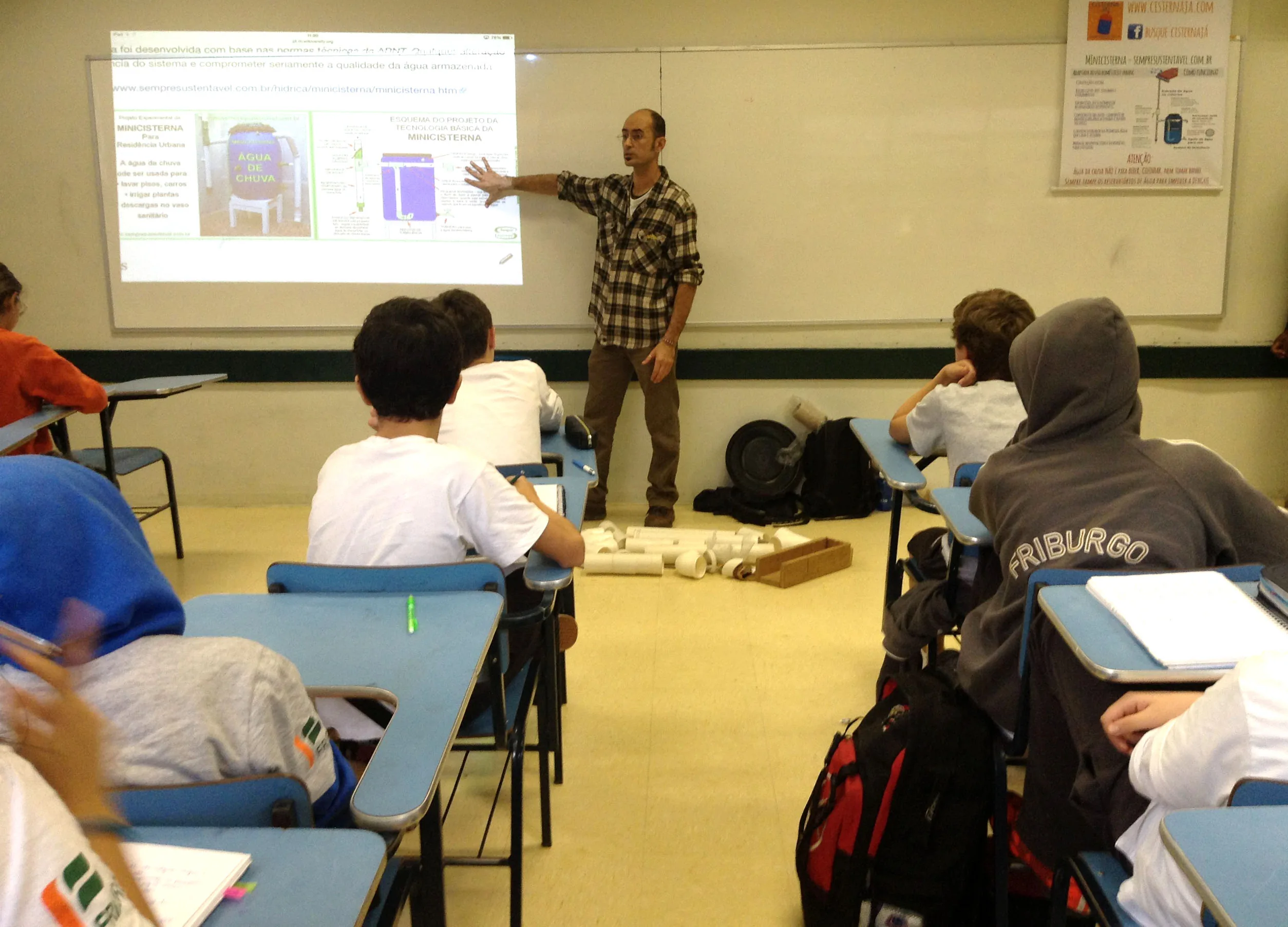 Alunos do 8º ano receberam um dos organizadores do Movimento Cisternas Já para uma palestra e oficina.